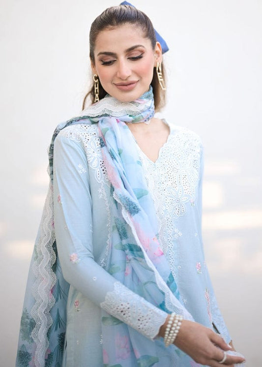 Pure Lawn Sky Blue Embroidered Dress - LL239