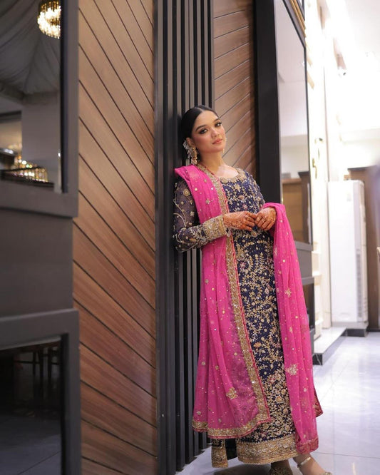 Pure Organza Navy Blue Embroidered Dress : WW205
