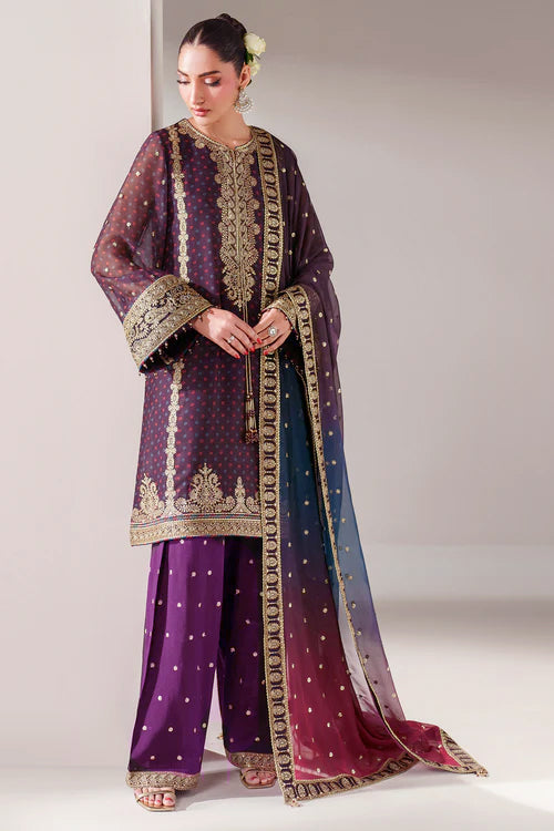 Pure Chiffon Reddish Mahroon Embroidered Dress - WW258