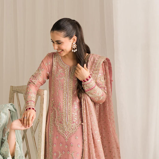 Pure Chiffon Triple Shaded Chunri Embroidered Dress - WW316