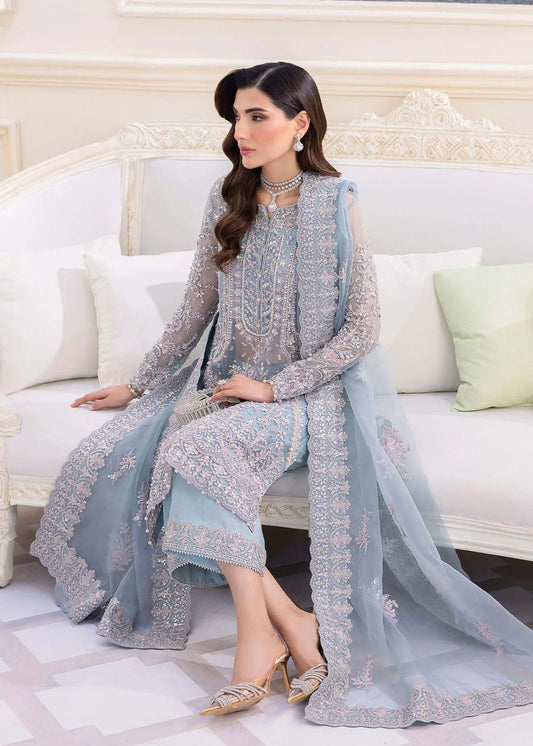 Pure Chiffon Sky Blue Embroidered Dress - WW306