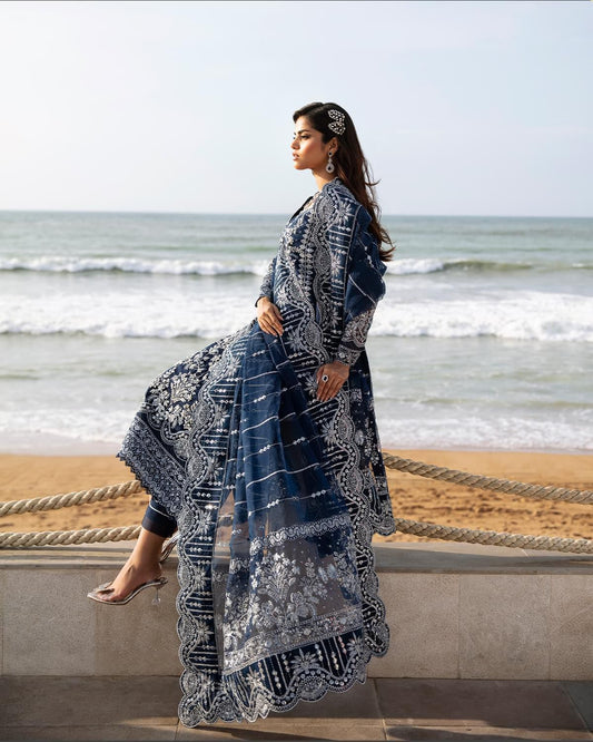 Pure Organza Navy Blue Embroidered Dress : WW205
