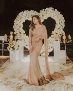 Pure Chiffon Beige Embroidered Saree - WW251
