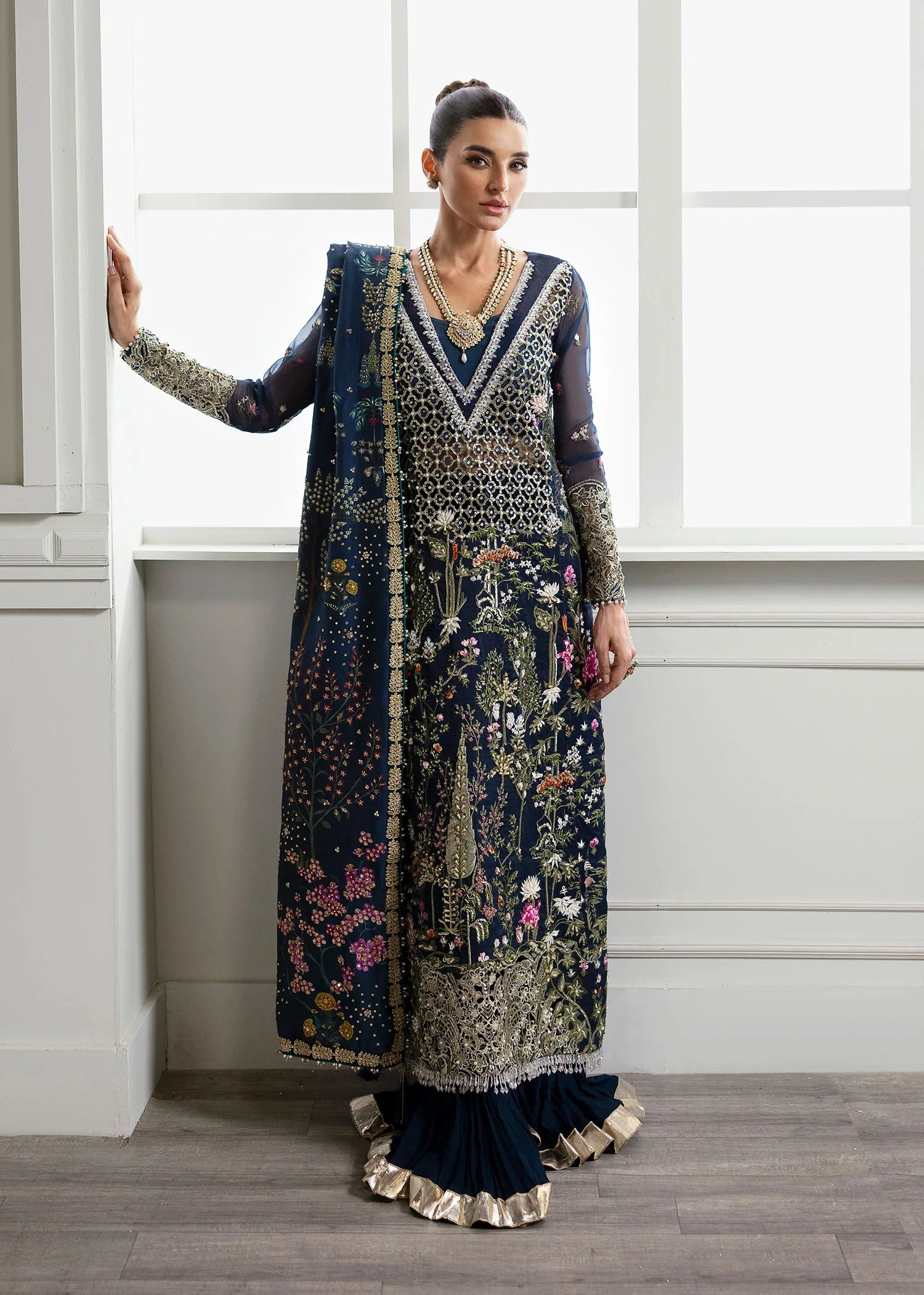 Pure Chiffon Midnight Blue Embroidered Dress : WW278
