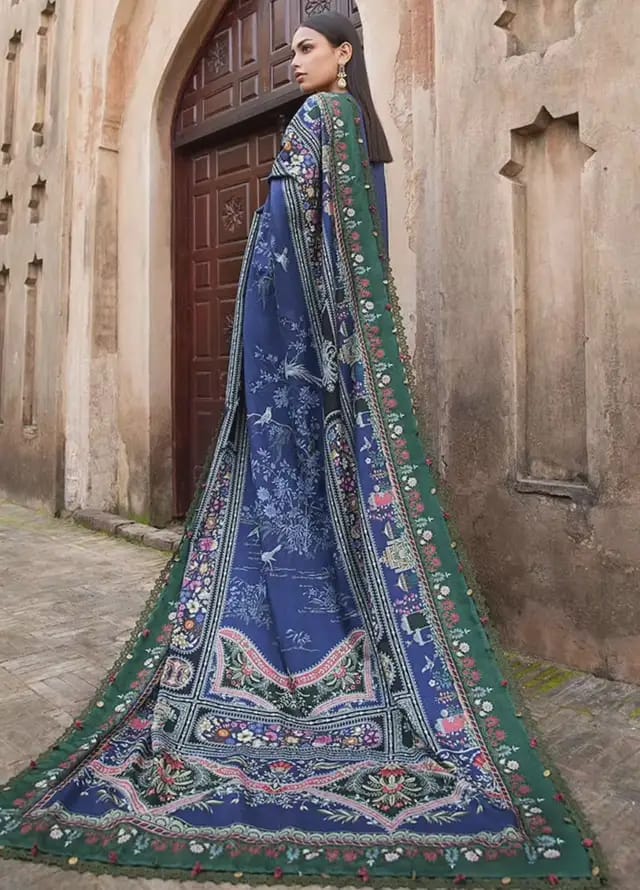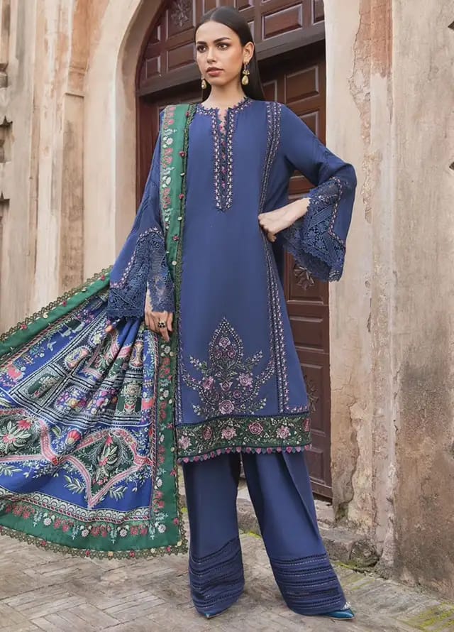Pure Lawn Blue Embroidered Dress - LL204