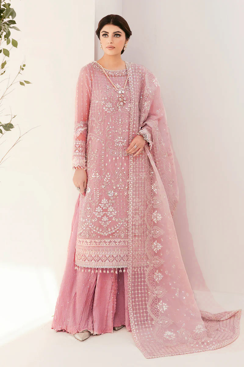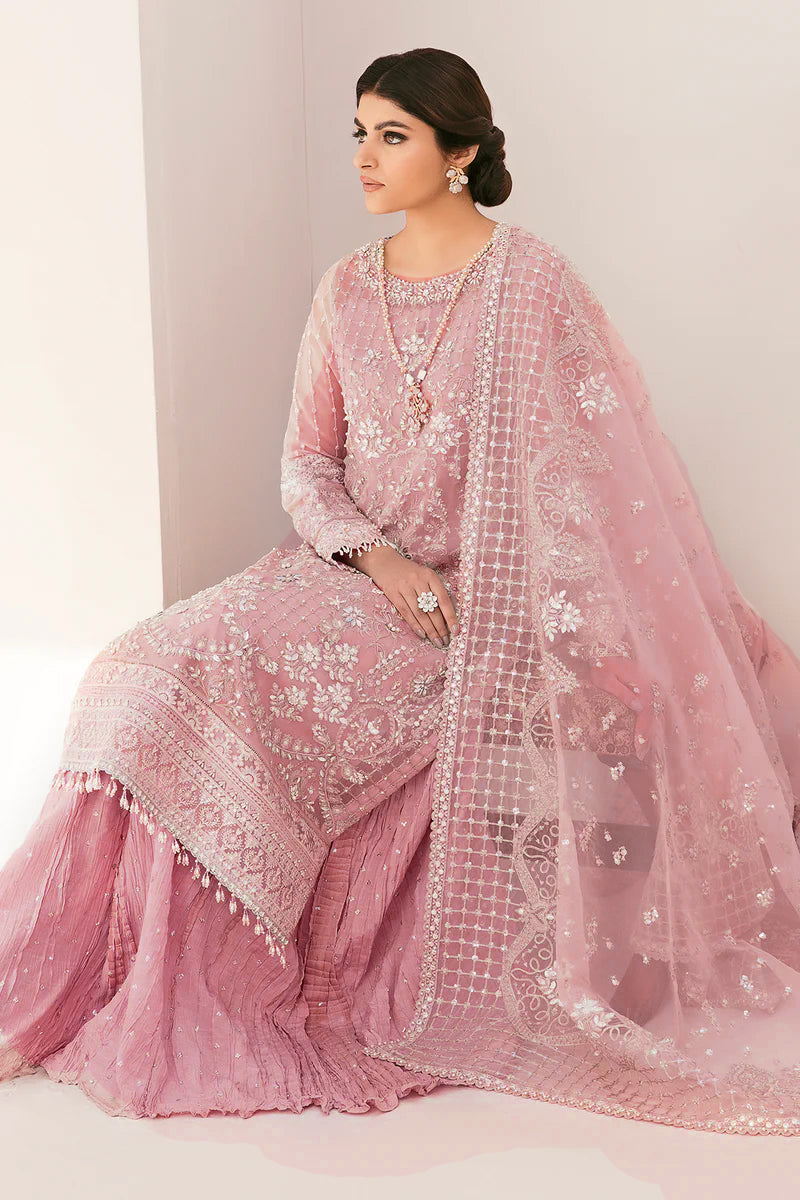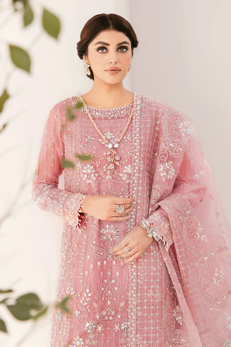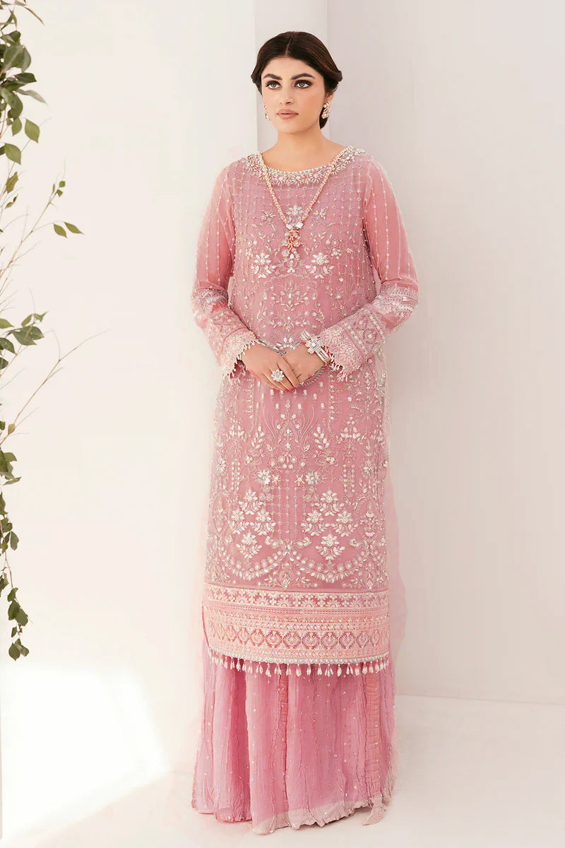 Pure Net Flamingo Pink Embroidered Dress - WW288